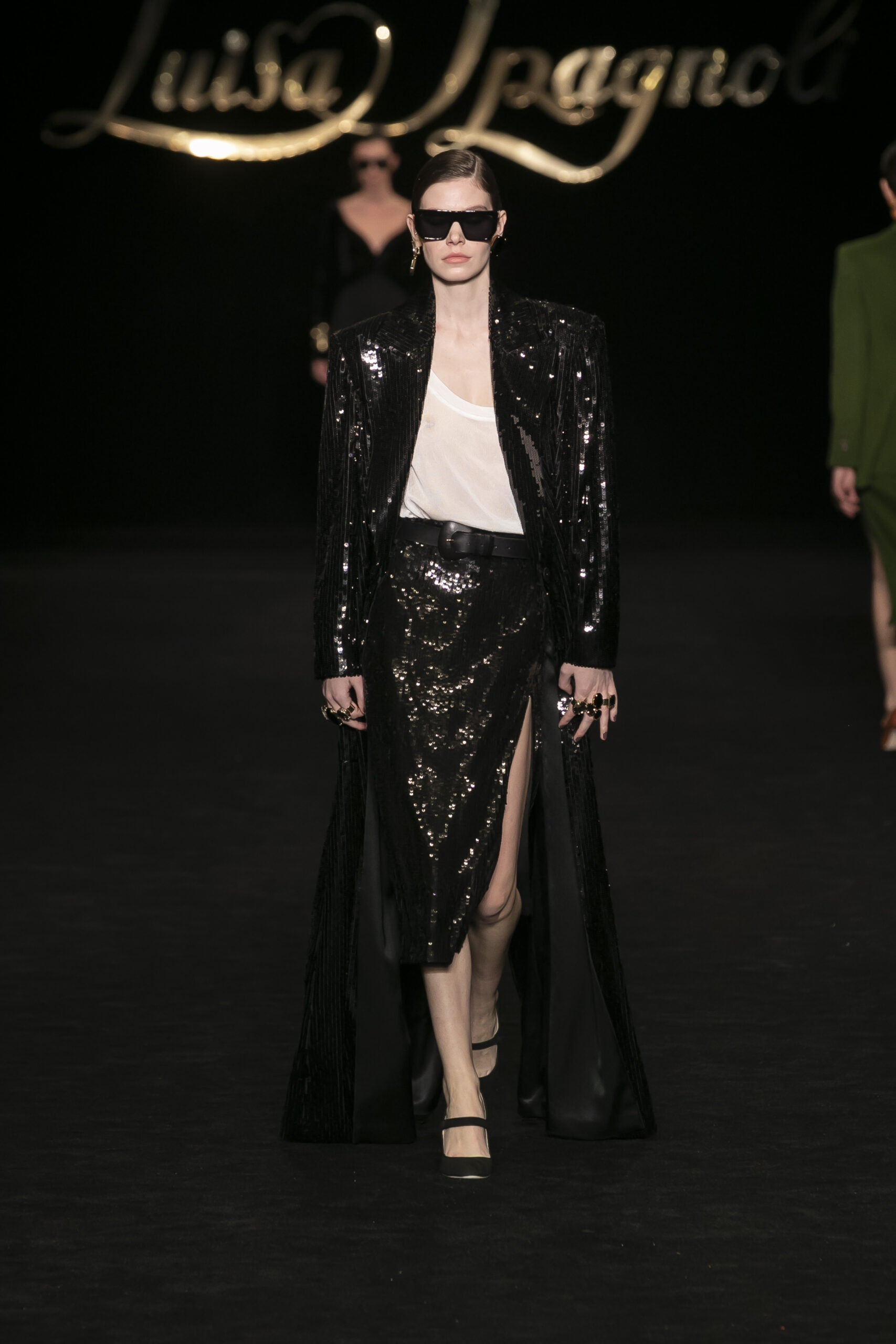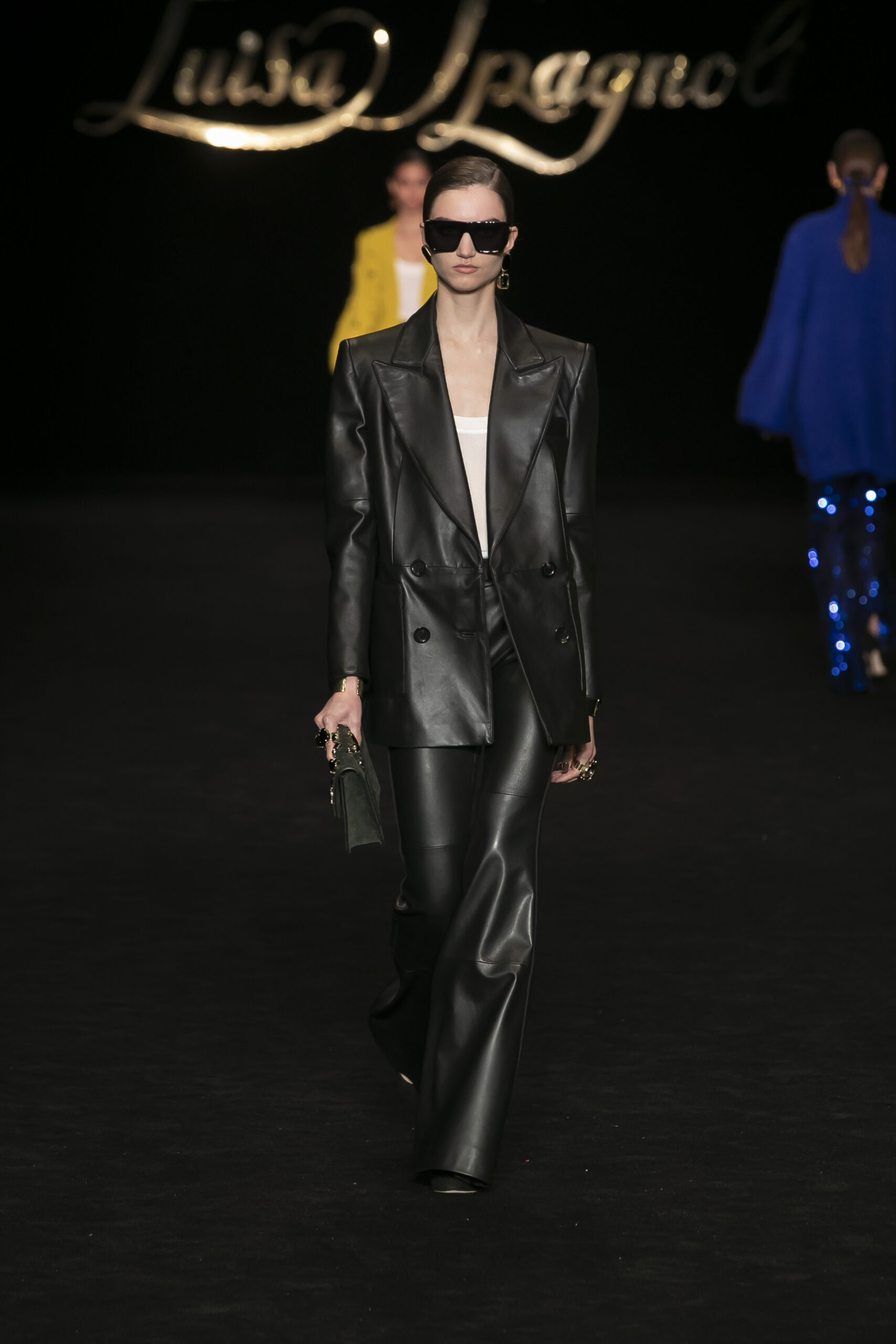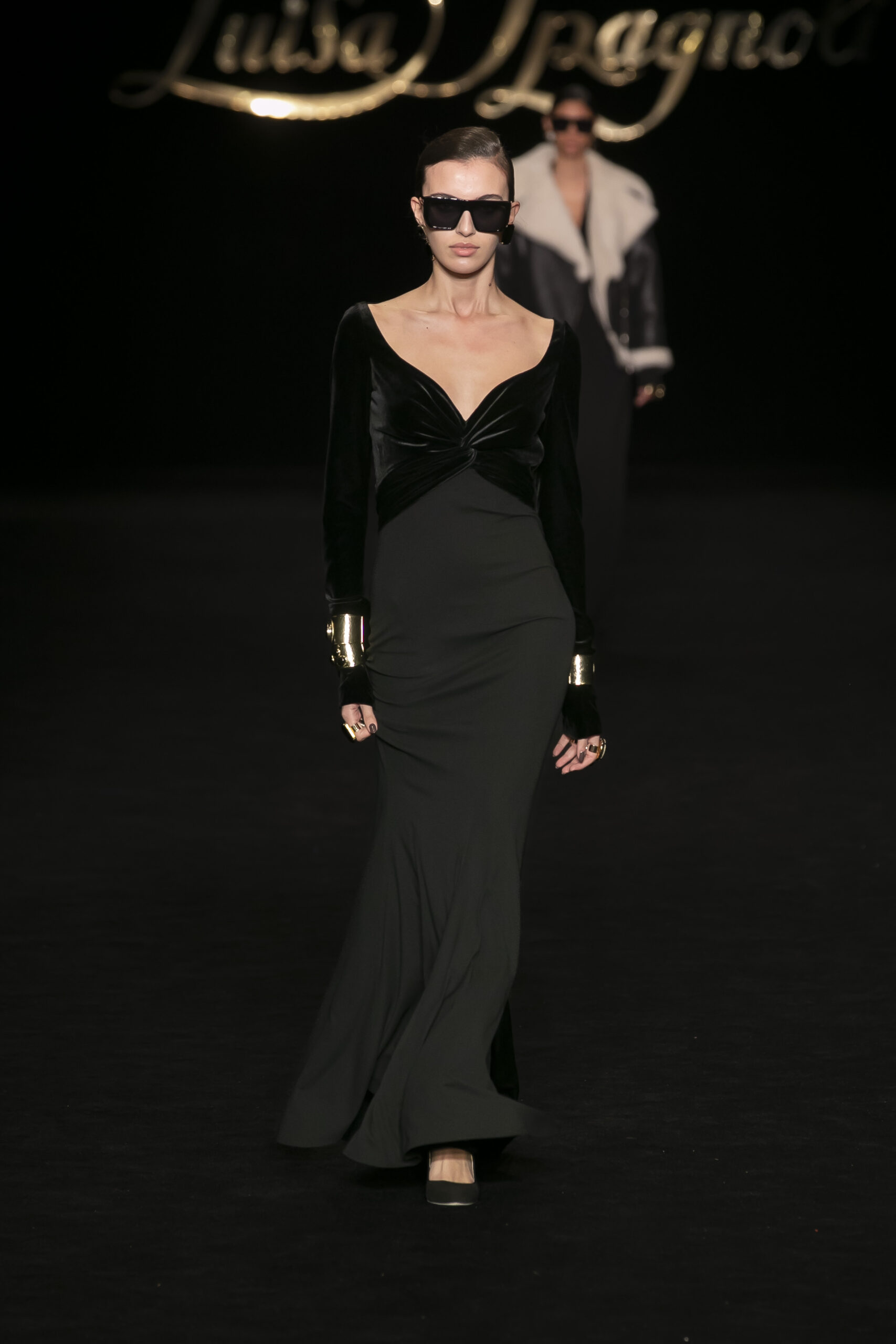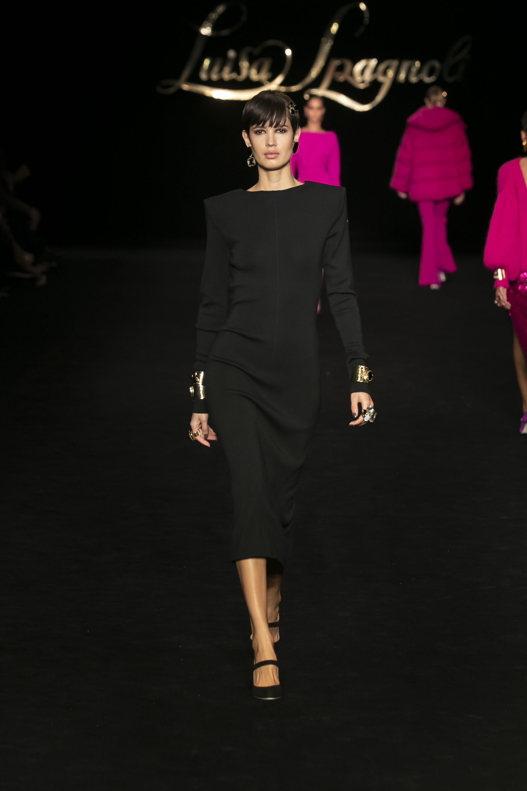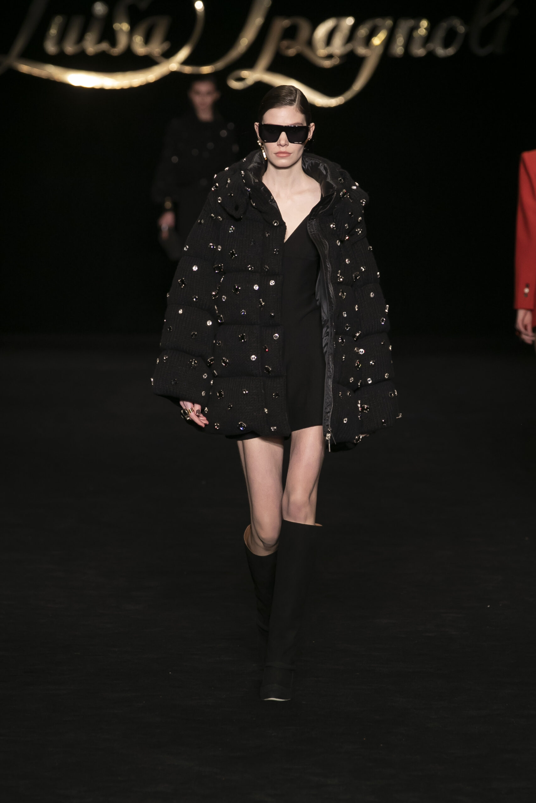 Nocturnal creatures embedding their love for polished dressing into their wardrobes, Luisa Spagnoliโs muses are characterized by a dash of mischievous mystery as they trade the all-black runway at the Scuola Militare Teuliรฉ during Milan Fashion Week.