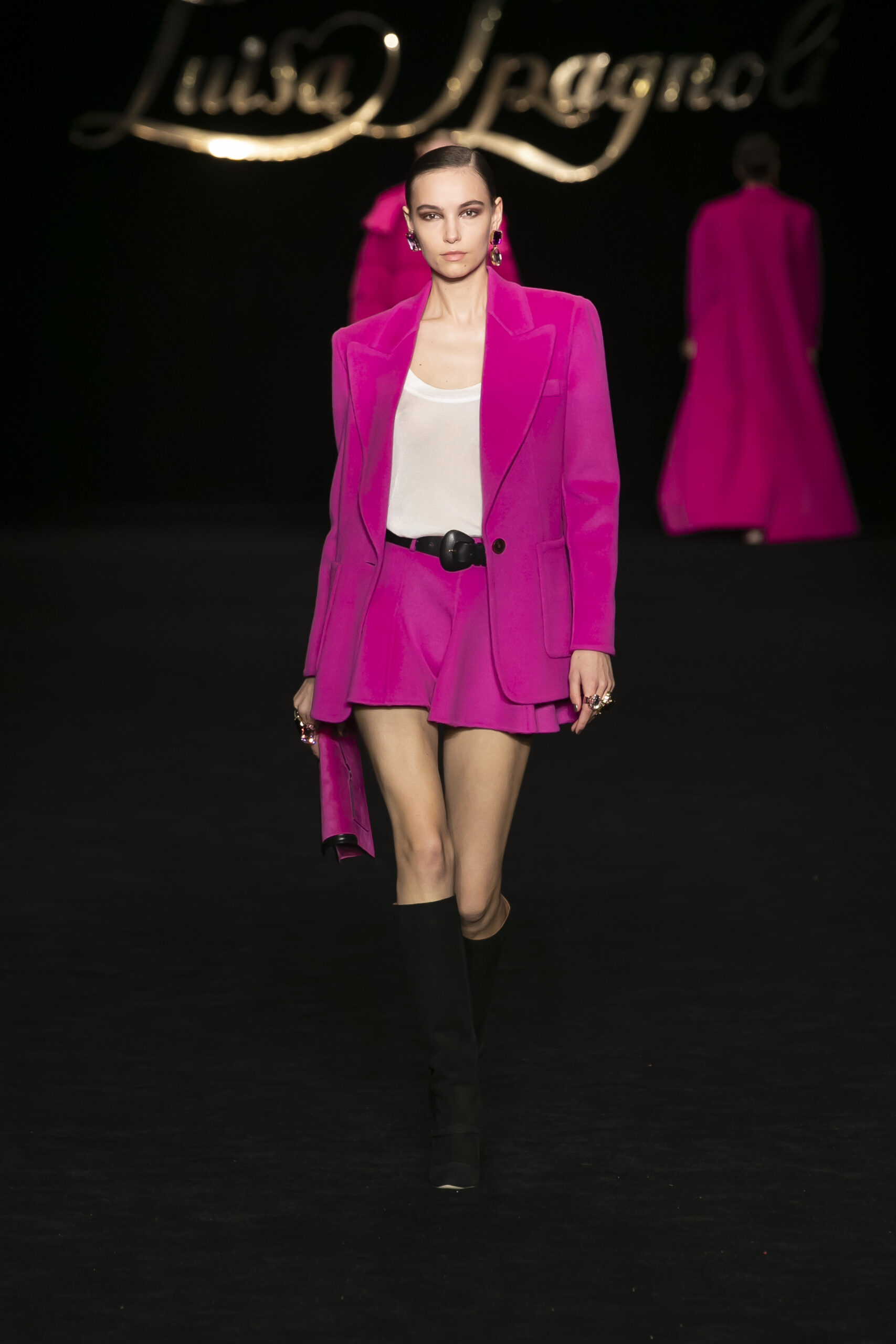 The juxtaposition of strength and delicacy, fearlessness and gentleness echoes throughout the lineup – one loaded with attitude and restating Luisa Spagnoliโs primary goal of celebrating women with her Made in Italy fashion.