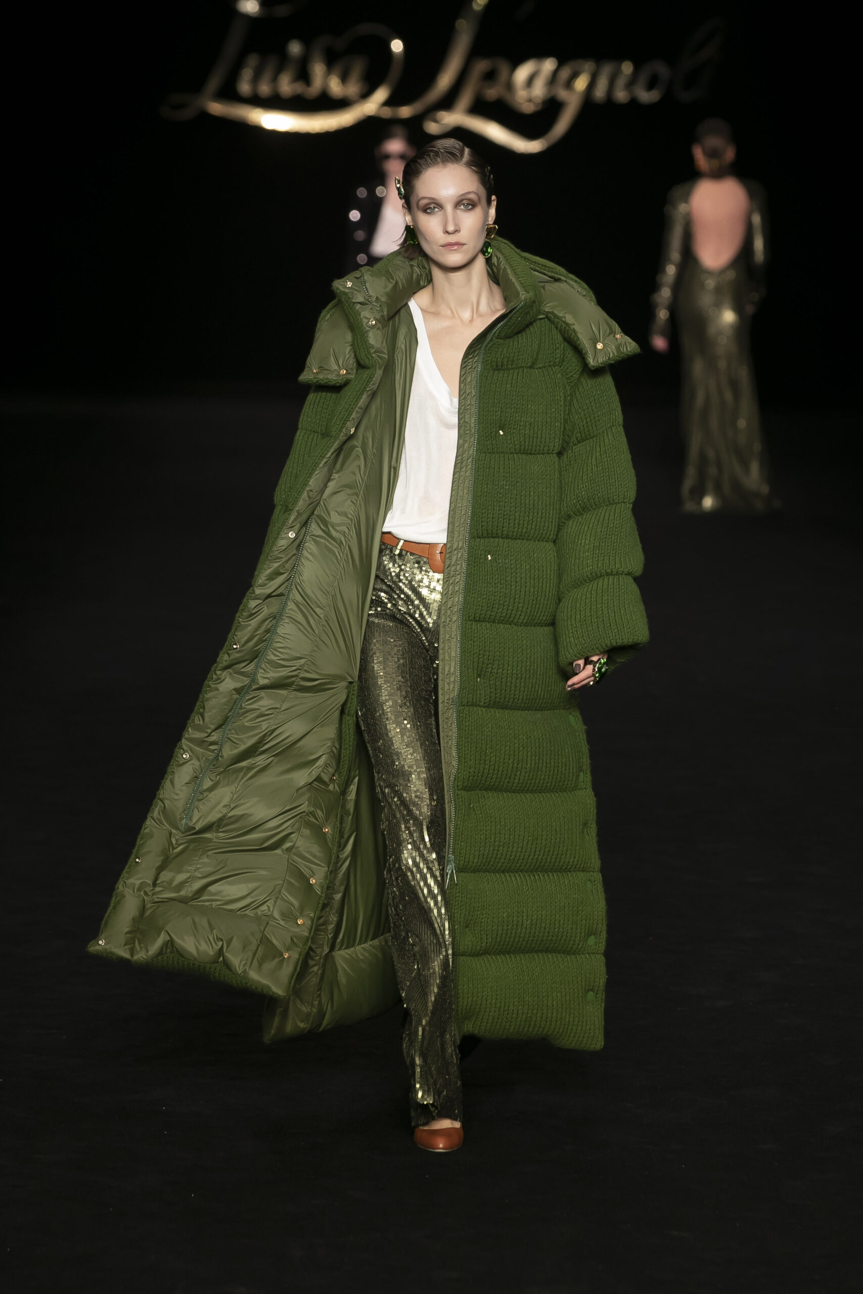 A playful touch is added by the seasonโs oversize knit puffers, extra-long and cocooning or cropped at the waist, some scattered with rhinestones.