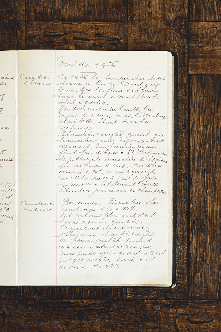 bottles in our cellars and no more archives. – Frédéric Panaïotis, Cellar Master, Ruinart ” In 1926, the temperature was supposed to give a good wine. August was beautiful but the flowering was late: the grapes matured under the October sun. All the possible diseases the vine had them: but the harvest was beautiful given the drought. The “Ruinart” label is an extract from the Ruinart Archives’ cellar notebooks. During the tasting of this vintage, Frédéric Panaïotis, Cellar Master of the Ruinart House, said: “Full-bodied wine, with heat. Must make a perfect English wine. The wine has not been altered too much by oxygen over time. It still retains aromas of ripe fruit, apricot, candied lemons and candied oranges. This is remarkable.“