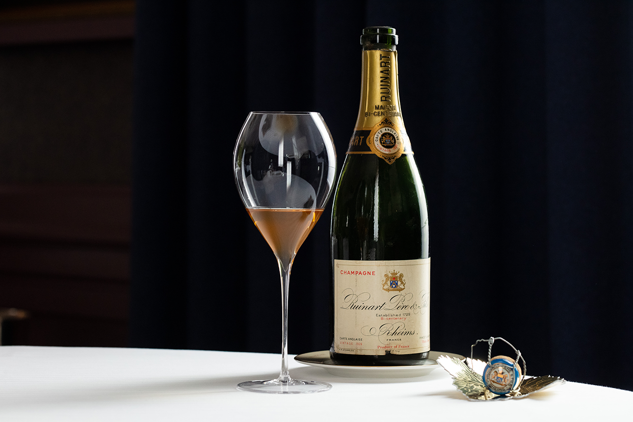 It was during a thorough cleaning of the cellars of the emblematic starred restaurant Paul Bocuse, in Lyon, that Maxime Valery, the new Head Sommelier, discovered 18 bottles of Ruinart champagne from 1926, scattered in various racks.