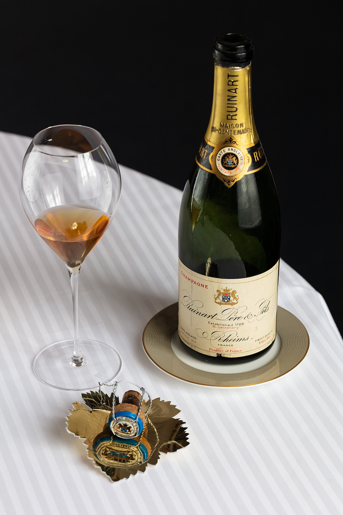 Dusty but in excellent condition, most of them were given to Frédéric Panaïotis, Cellar Master of the Ruinart House, to join the wine library of the oldest Champagne House.