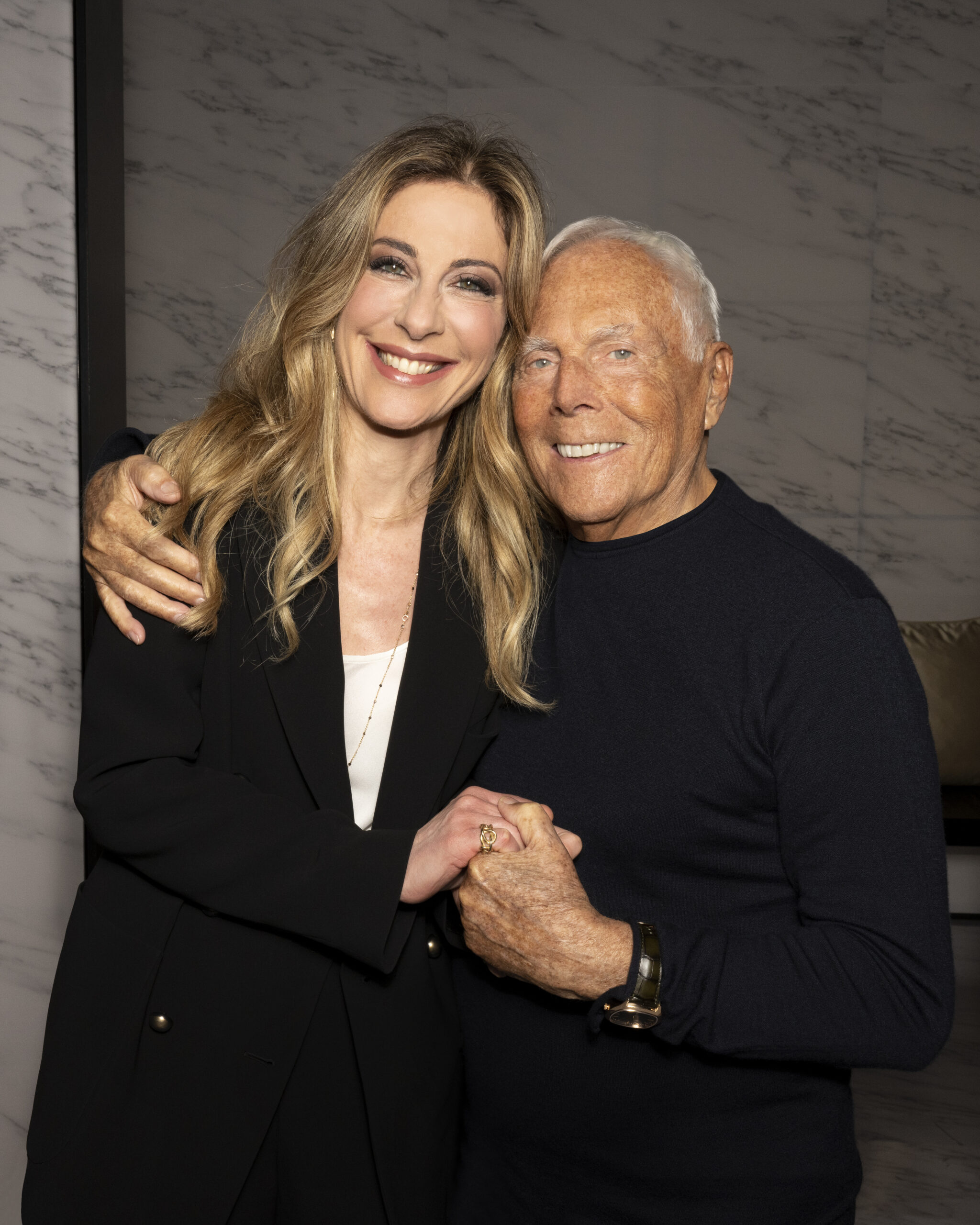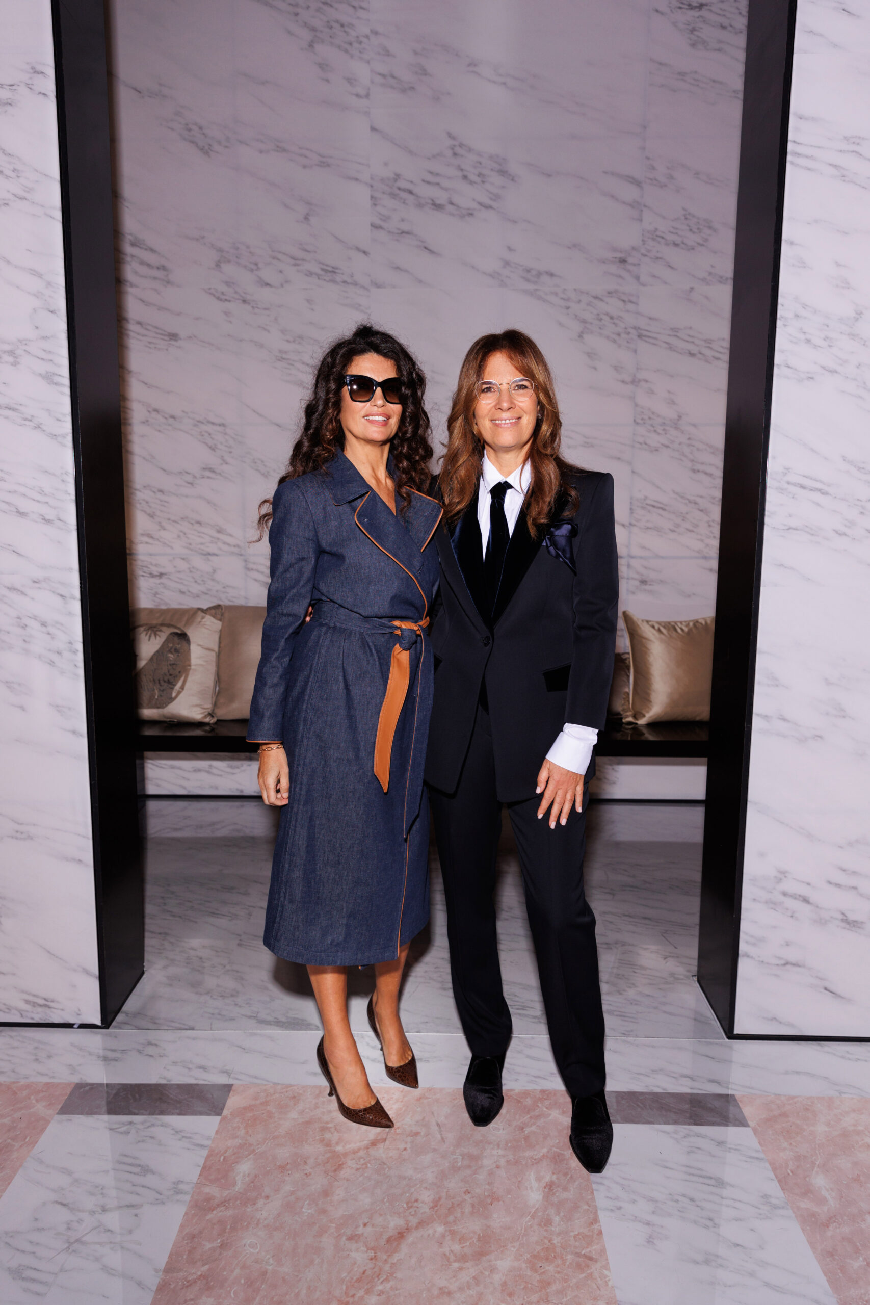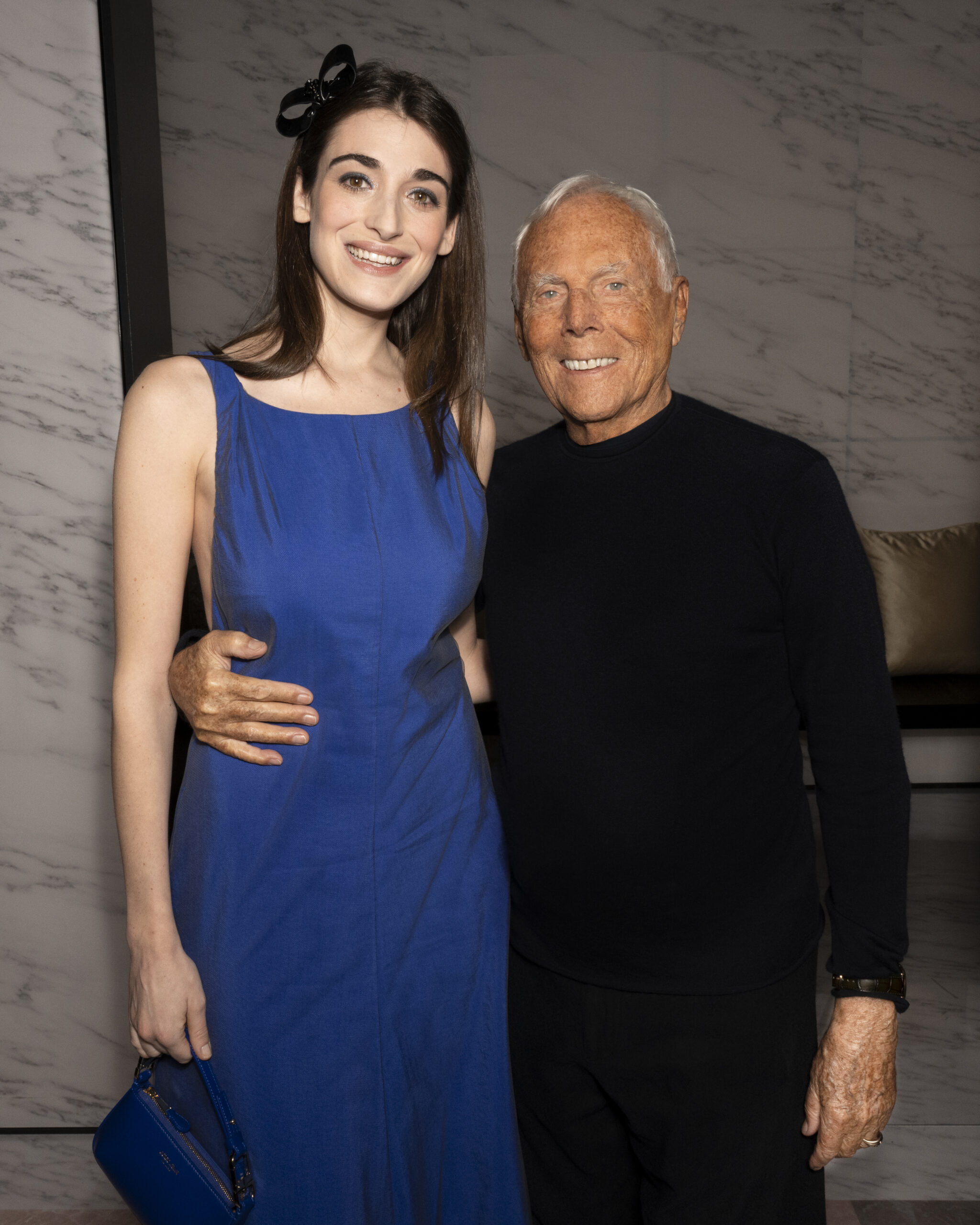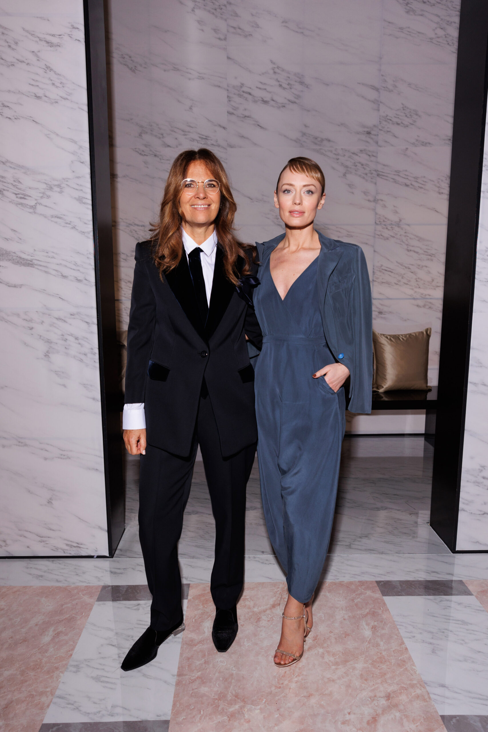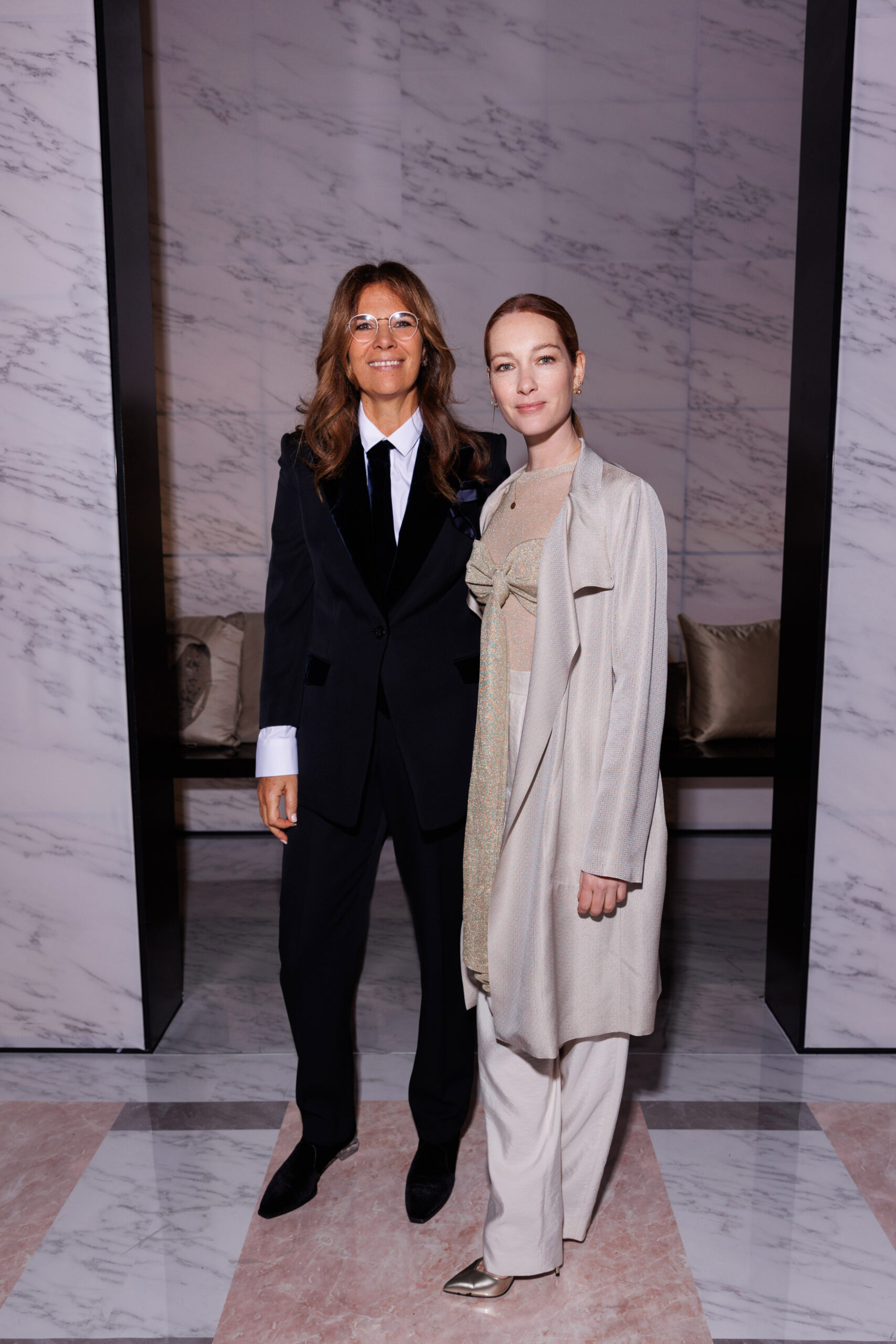 Makeup is always an intimate and personal moment. So is the atmosphere that permeates this collection, and not just because Giorgio Armani once again invites his guests to the small theater in Via Borgonuovo 21. After crossing the threshold of the Milanese palaces, suggested by the elegant marble frame and the harmony of colors and spaces, the guests are welcomed into a domestic dimension evoked by the presence of sofa cushions. It feels like a living room, a place for dialogue and socialization, and the wardrobe that accompanies this idea of gentle domesticity is fluid and sublime.