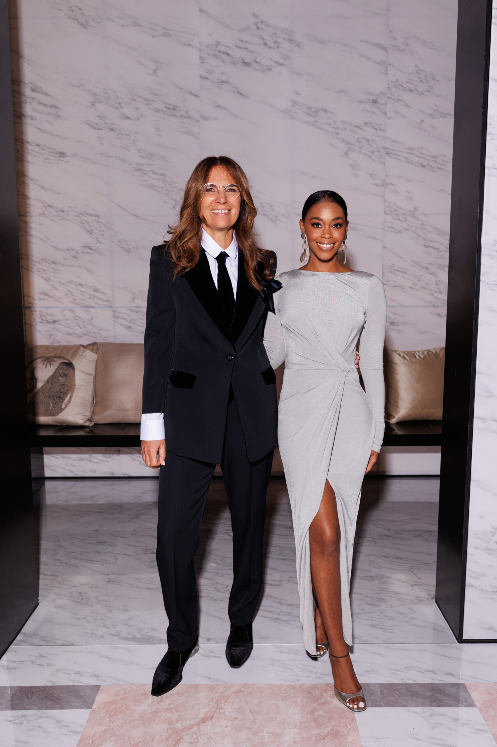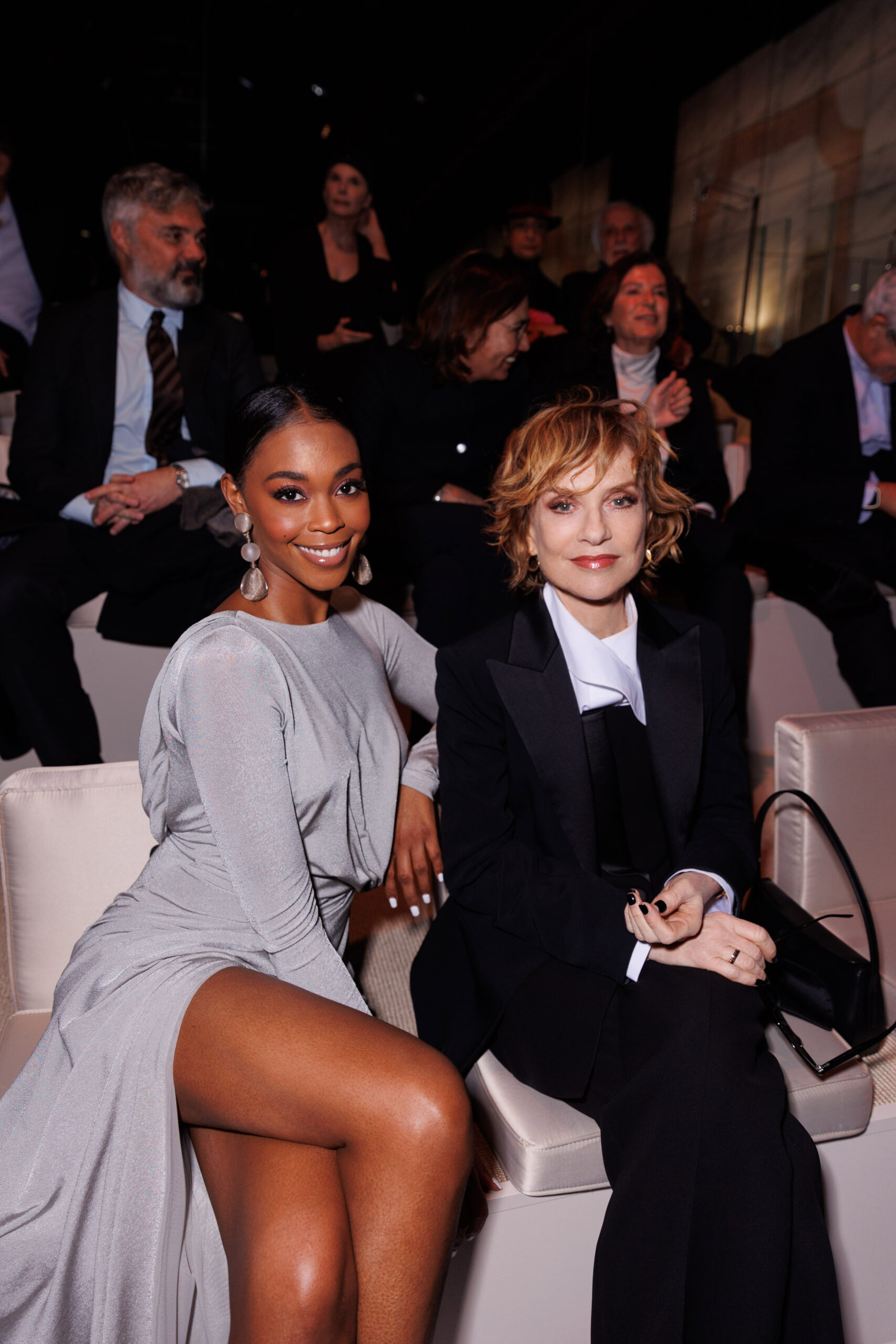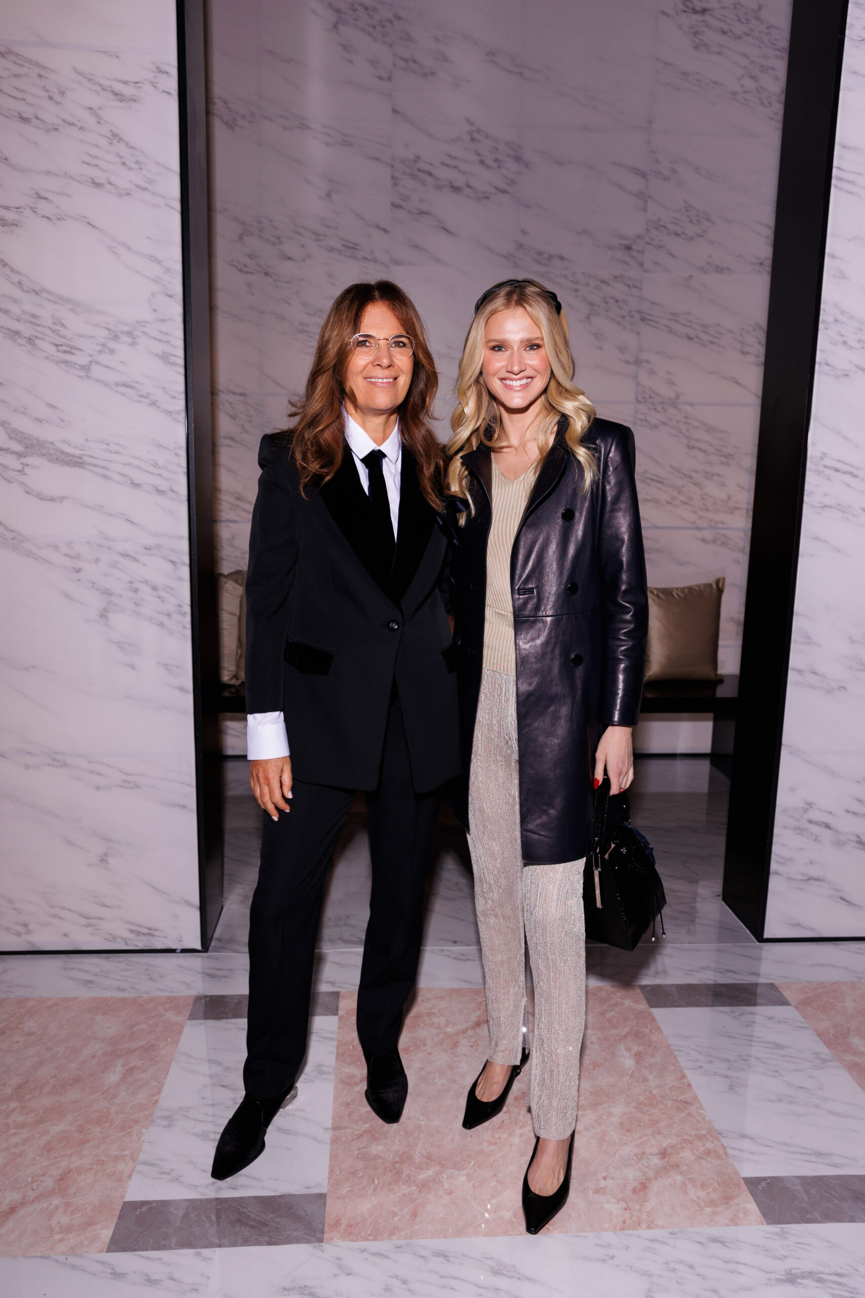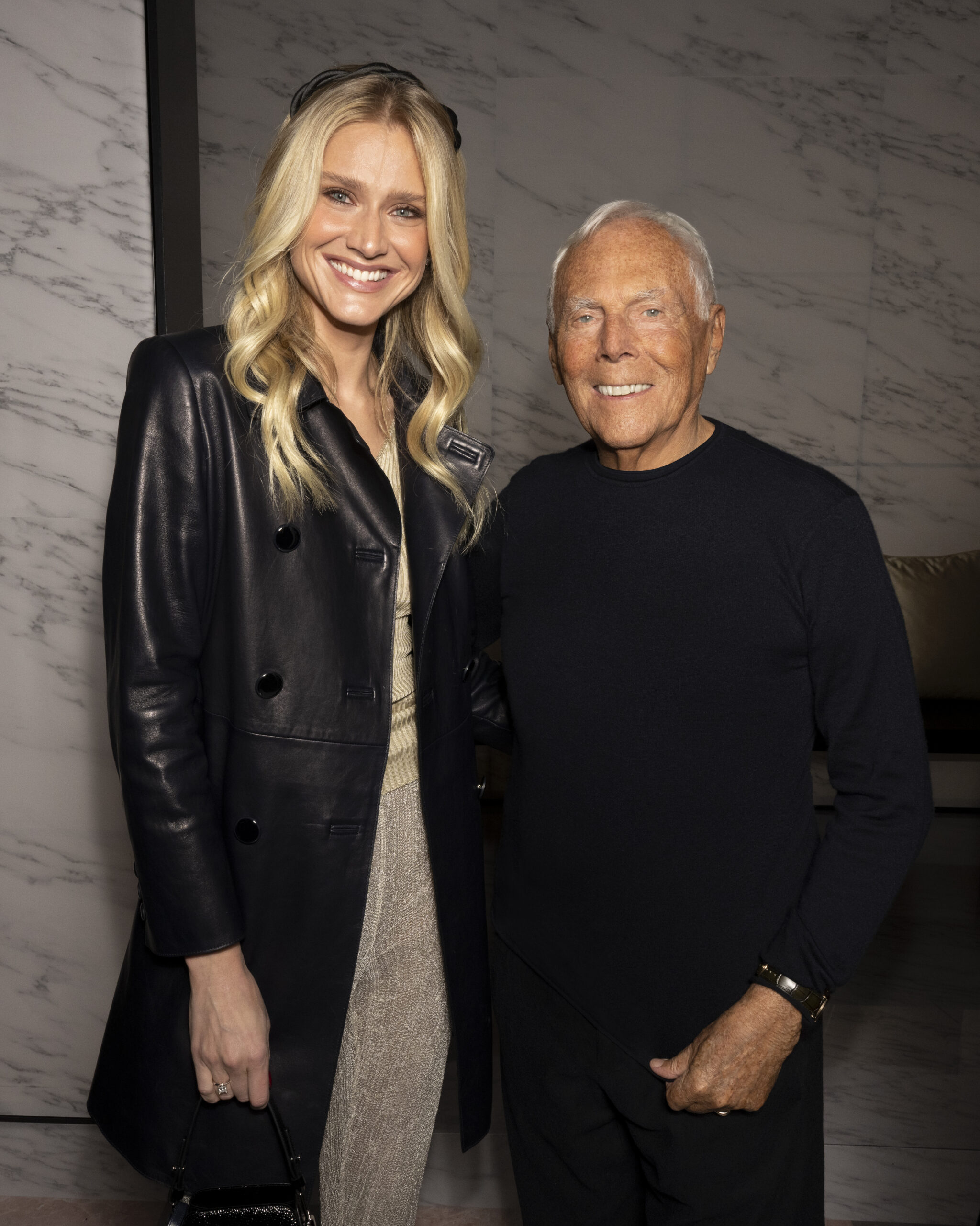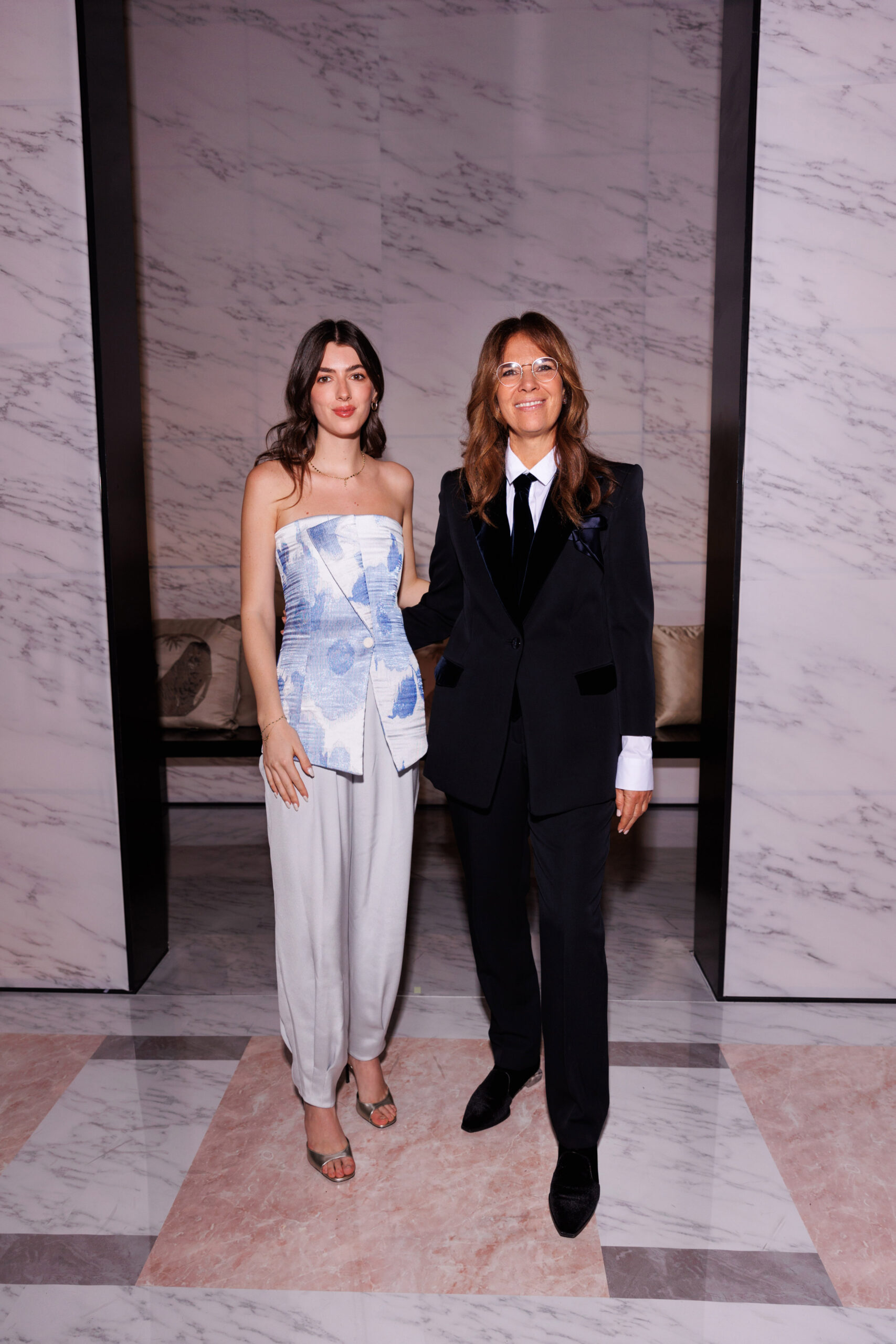 Makeup is always an intimate and personal moment. So is the atmosphere that permeates this collection, and not just because Giorgio Armani once again invites his guests to the small theater in Via Borgonuovo 21. After crossing the threshold of the Milanese palaces, suggested by the elegant marble frame and the harmony of colors and spaces, the guests are welcomed into a domestic dimension evoked by the presence of sofa cushions. It feels like a living room, a place for dialogue and socialization, and the wardrobe that accompanies this idea of gentle domesticity is fluid and sublime.