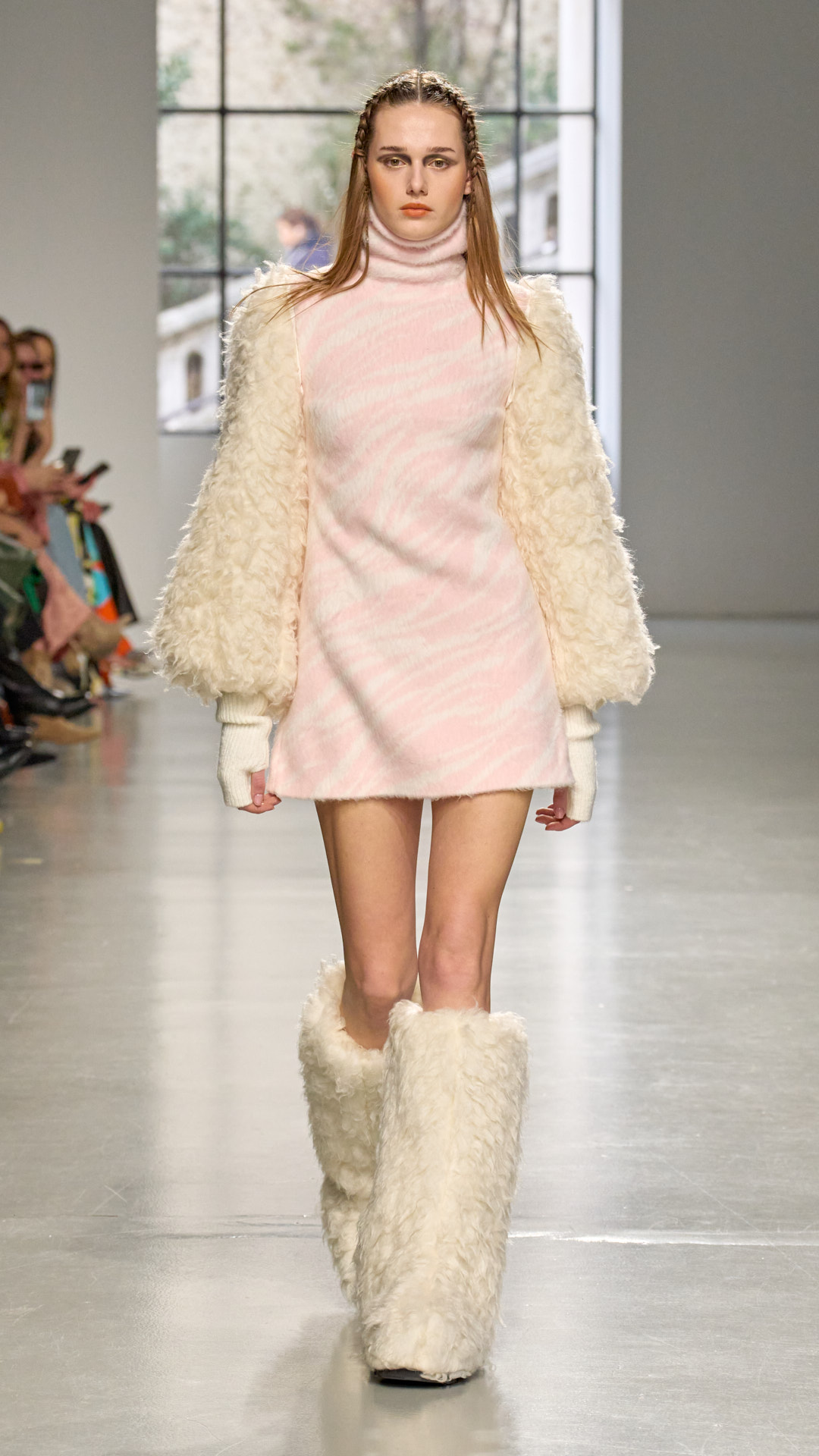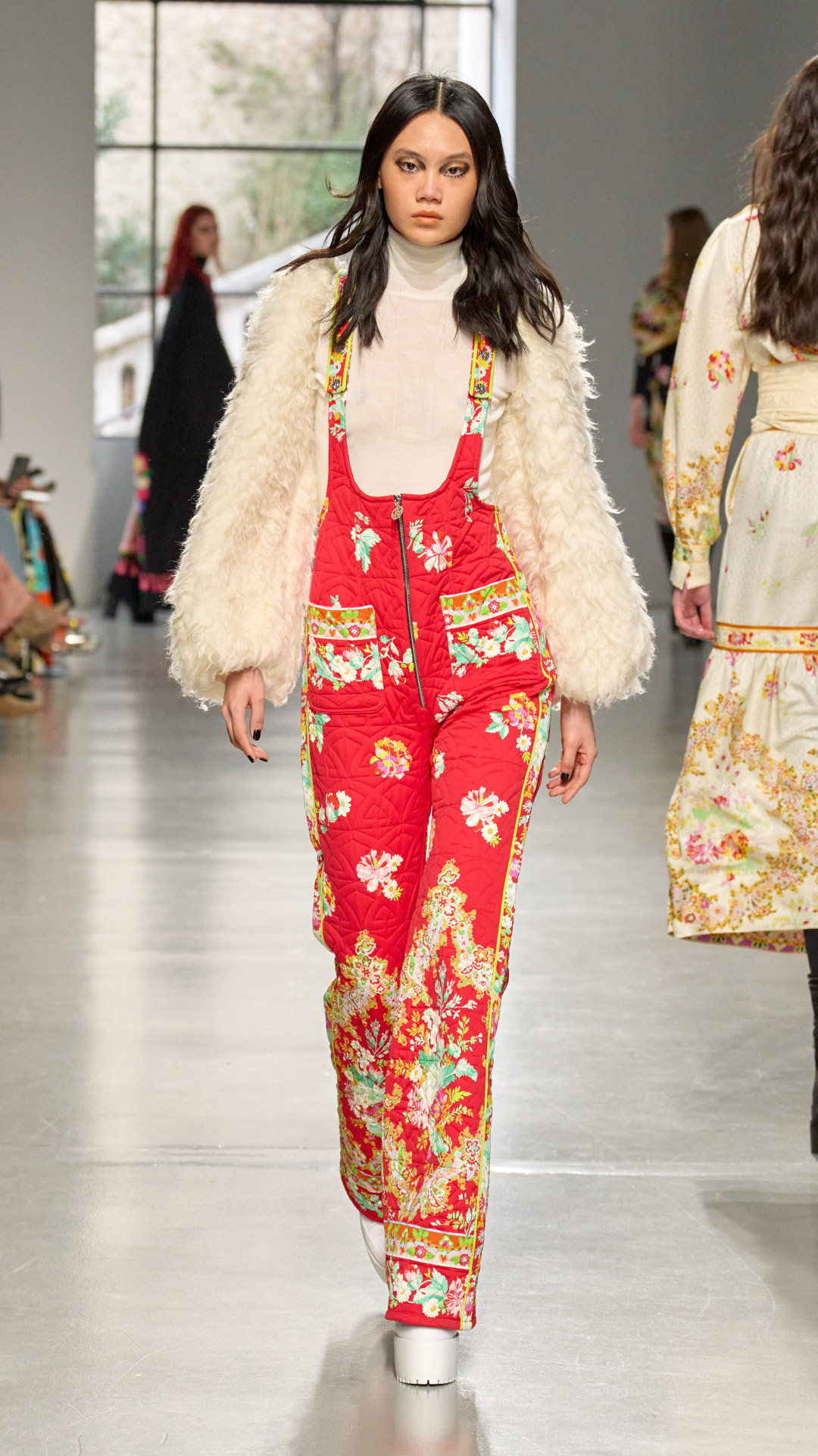 Georg Lux, the designer of the LEONARD fashion house, takes us on a day in the life of a LEONARD woman for the fall-winter 2023-24. This woman is a passionate skier, hurtling down the slopes of the most inaccessible mountains with disconcerting ease. For her, the intimate picnics and thrills of off-roading are a way of life. Once back in her mountain chalet, she welcomes her friends and relatives for a moment of conviviality in a warm setting.