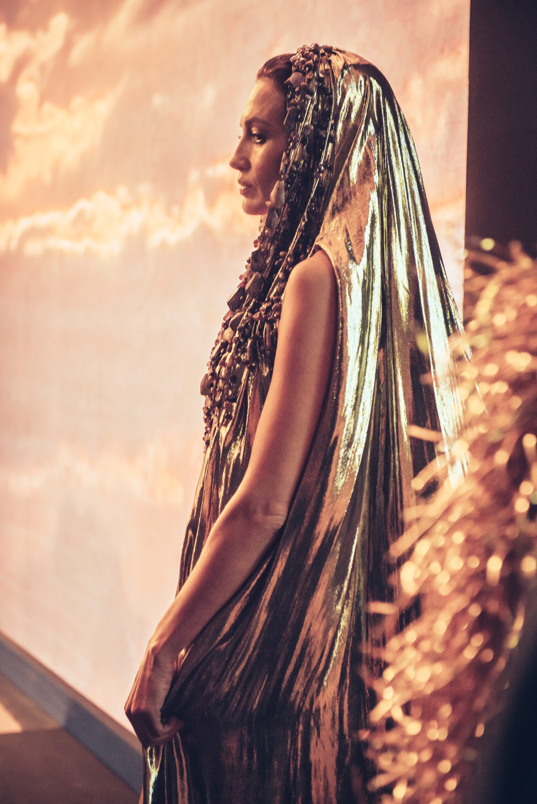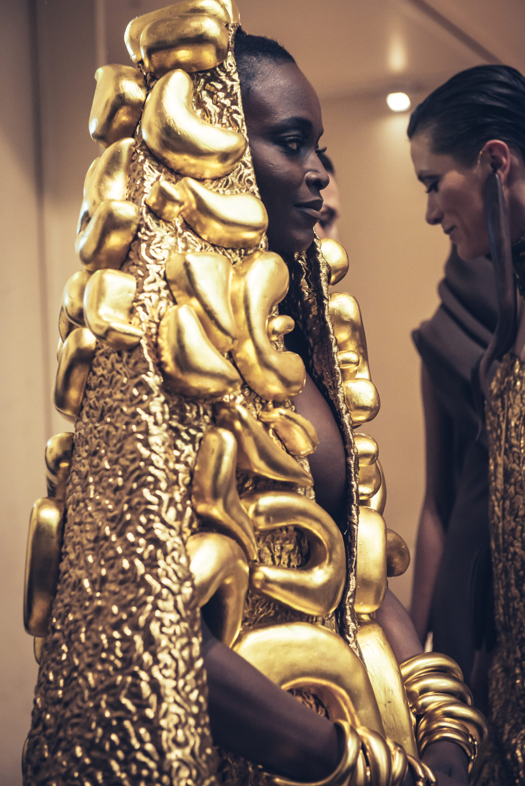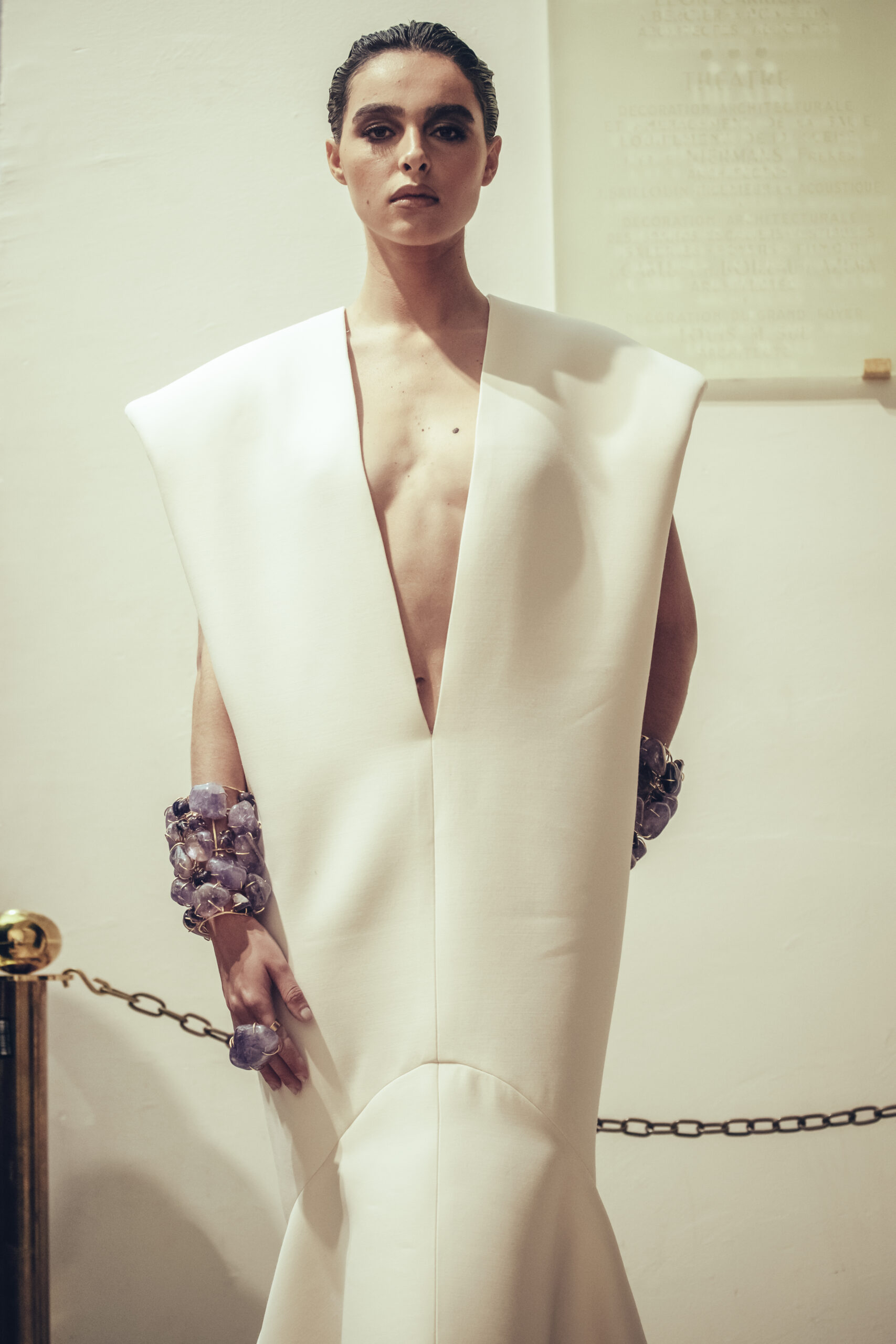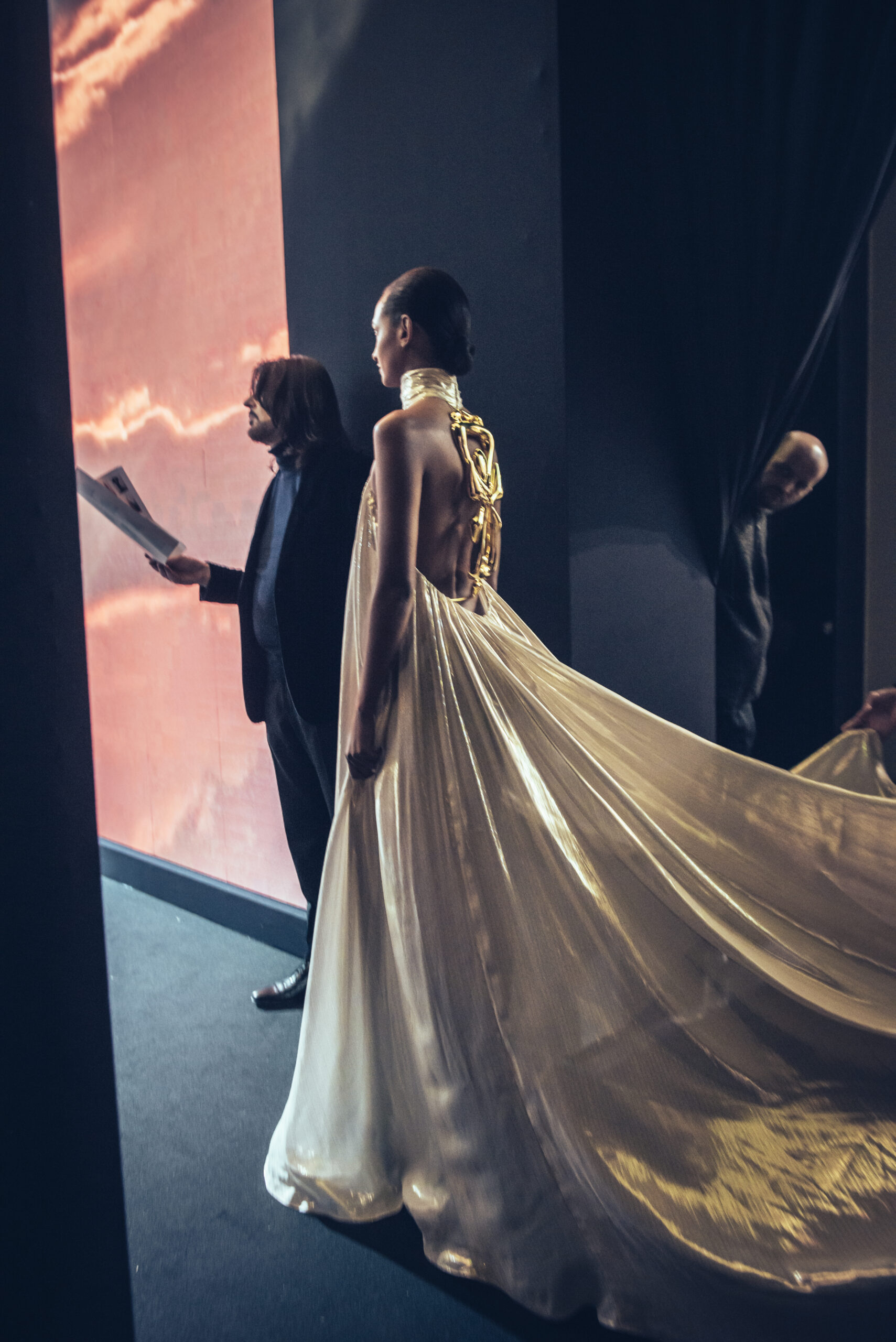 The show was held at the Théâtre National de Chaillot on January 24, 2023, presenting the spring-summer 2023 haute couture collection, entitled “Saudade Meu Amor”. The collection was presented in three acts, drawing inspiration from the sensuality of Bossa Nova, the architecture of Oscar Niemeyer and the rituals and art of the Amazonian culture. The collection featured totem dresses, ponchos and dresses embroidered with symbols and mirrors, capturing the light and creating a sense of divinity for the women wearing them. The last act was inspired by the gold of the conquistadors, with dresses and jackets made of metallic fabrics and adorned with crystals and amethysts, evoking the baroque style of the churches in Bahia. The collection was a journey from minimalism to abundance, gathering extremes to create a new balance and light.