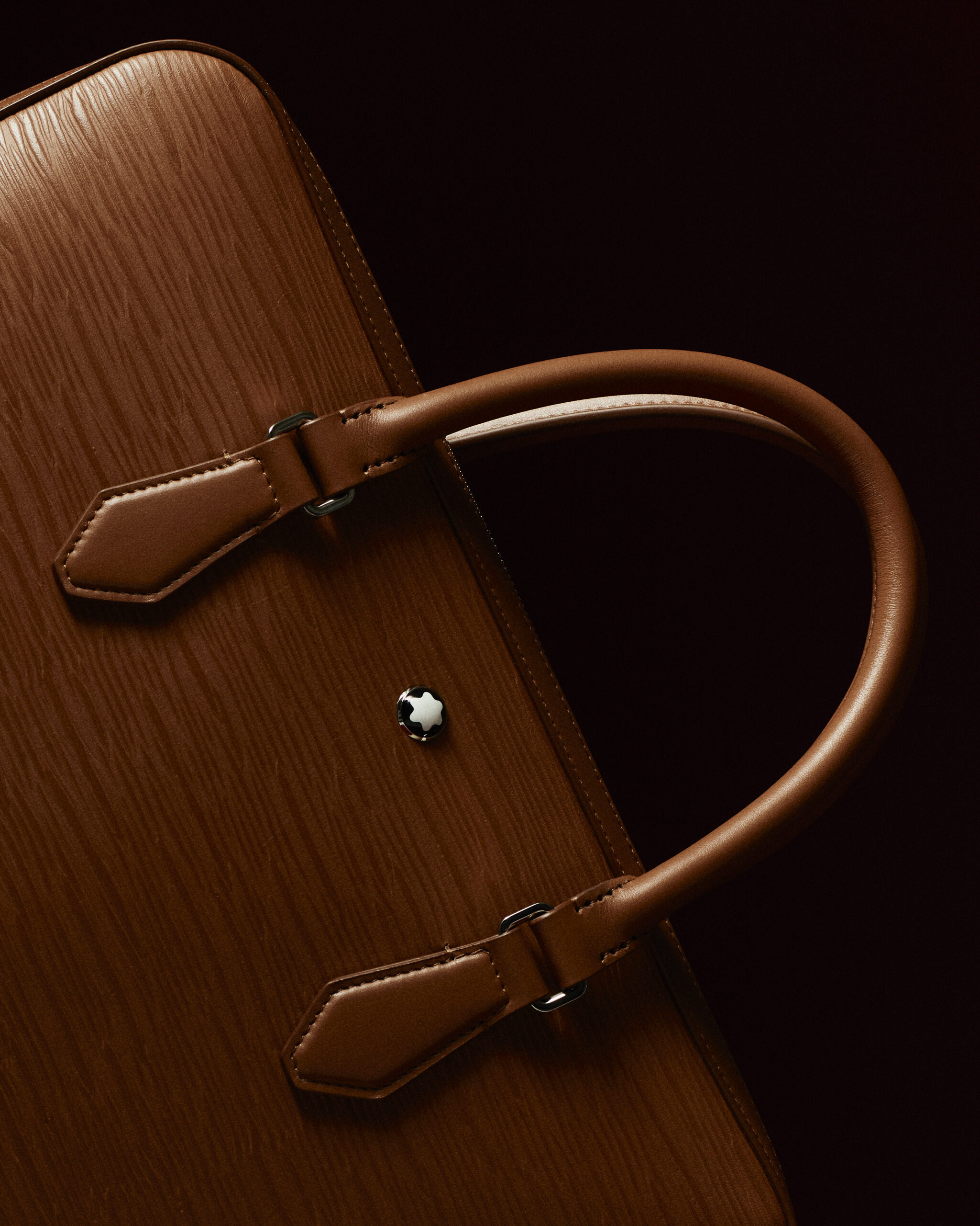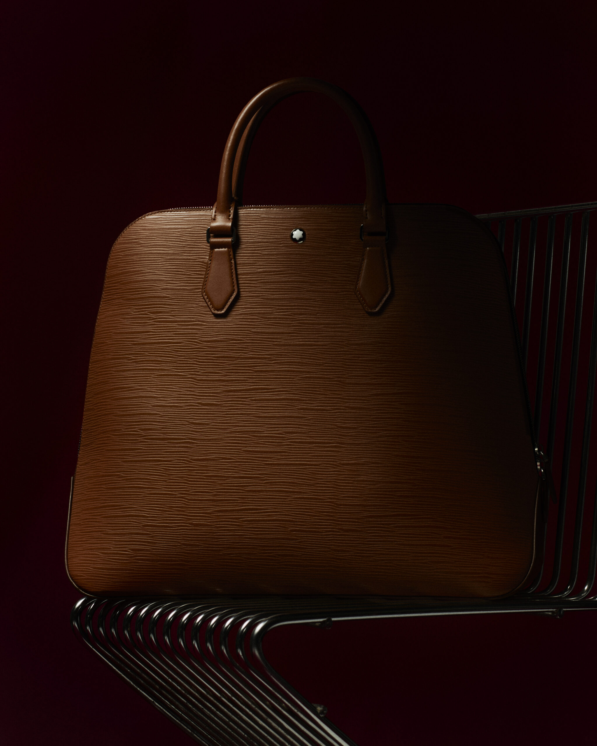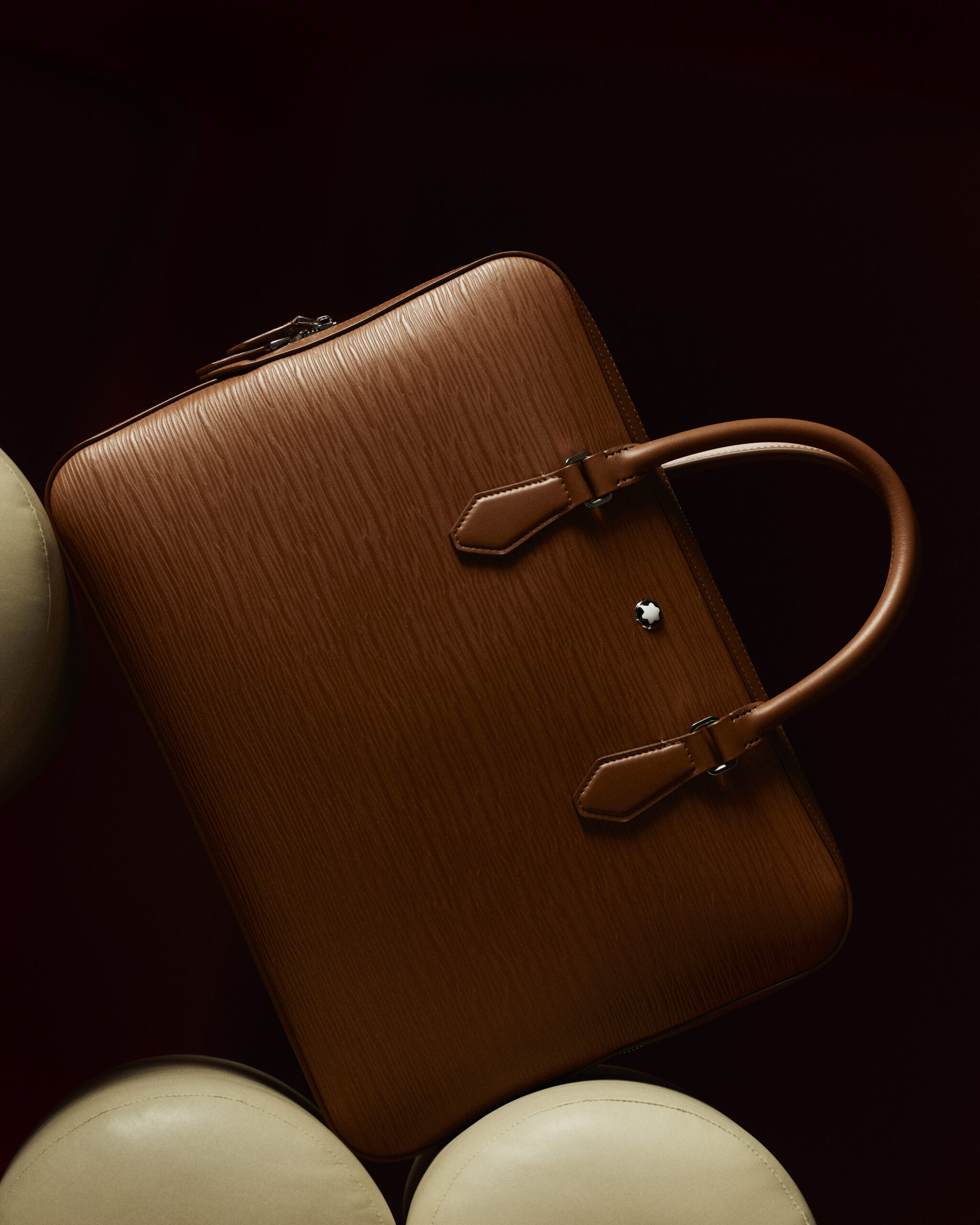 Montblanc has revisited its Meisterstück 4810 leather goods collection, adding practical finishes inspired by the world of writing and original stamped leather. The collection’s elegant new shapes are crafted in original stamped leather with a tree bark pattern, available in a palette of timeless natural colors. The collection offers clever storage solutions and a modular system that allows small items to be attached to large-format bags, for even greater personalization of each model. The triangular shape of the handles evokes the brand’s ink bottles, while the sides of the bags recall the folds of an envelope. Pieces include a slim briefcase, a trapeze-shaped tote and a bowling bag, with a practical modular system for attaching an envelope pouch, a mini bag or a phone pouch.