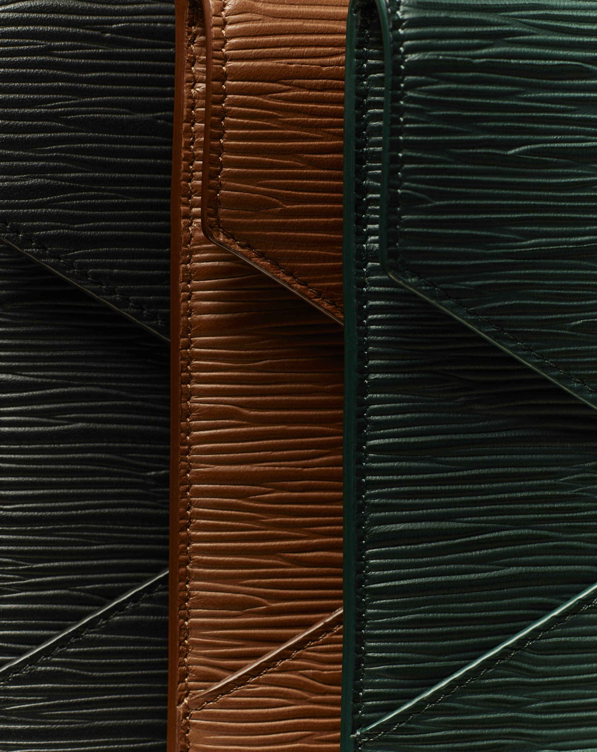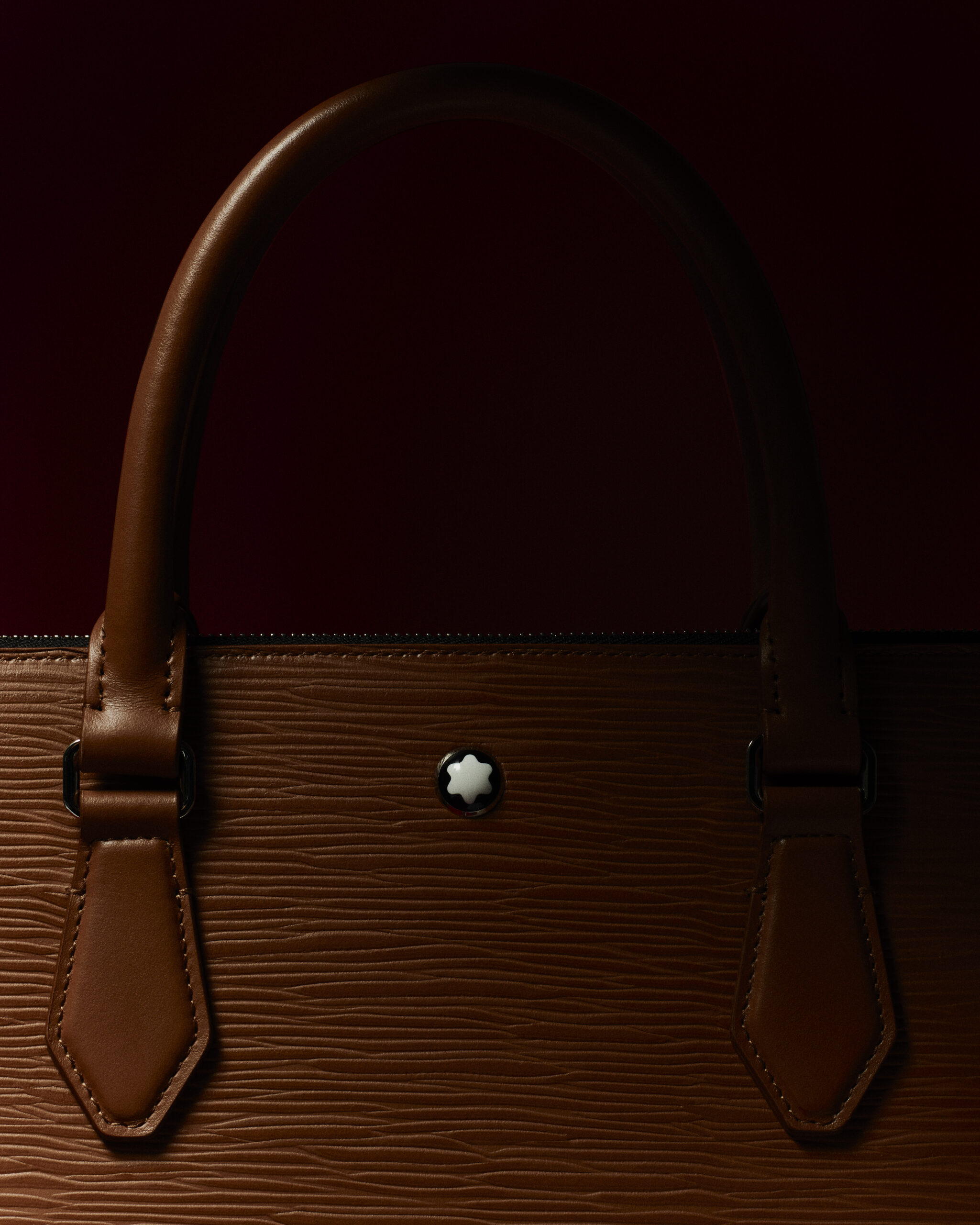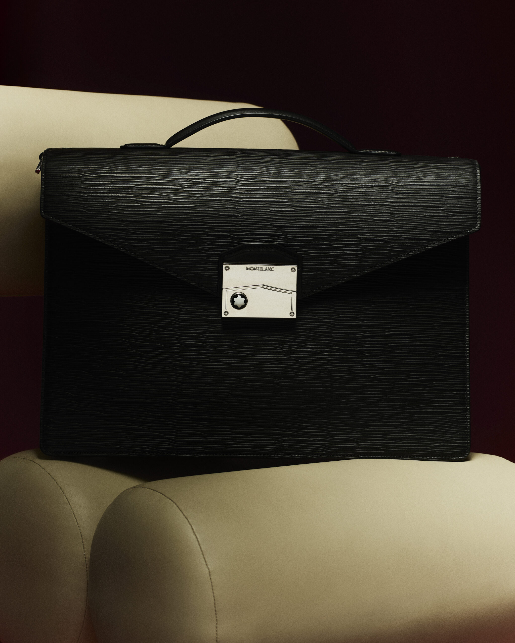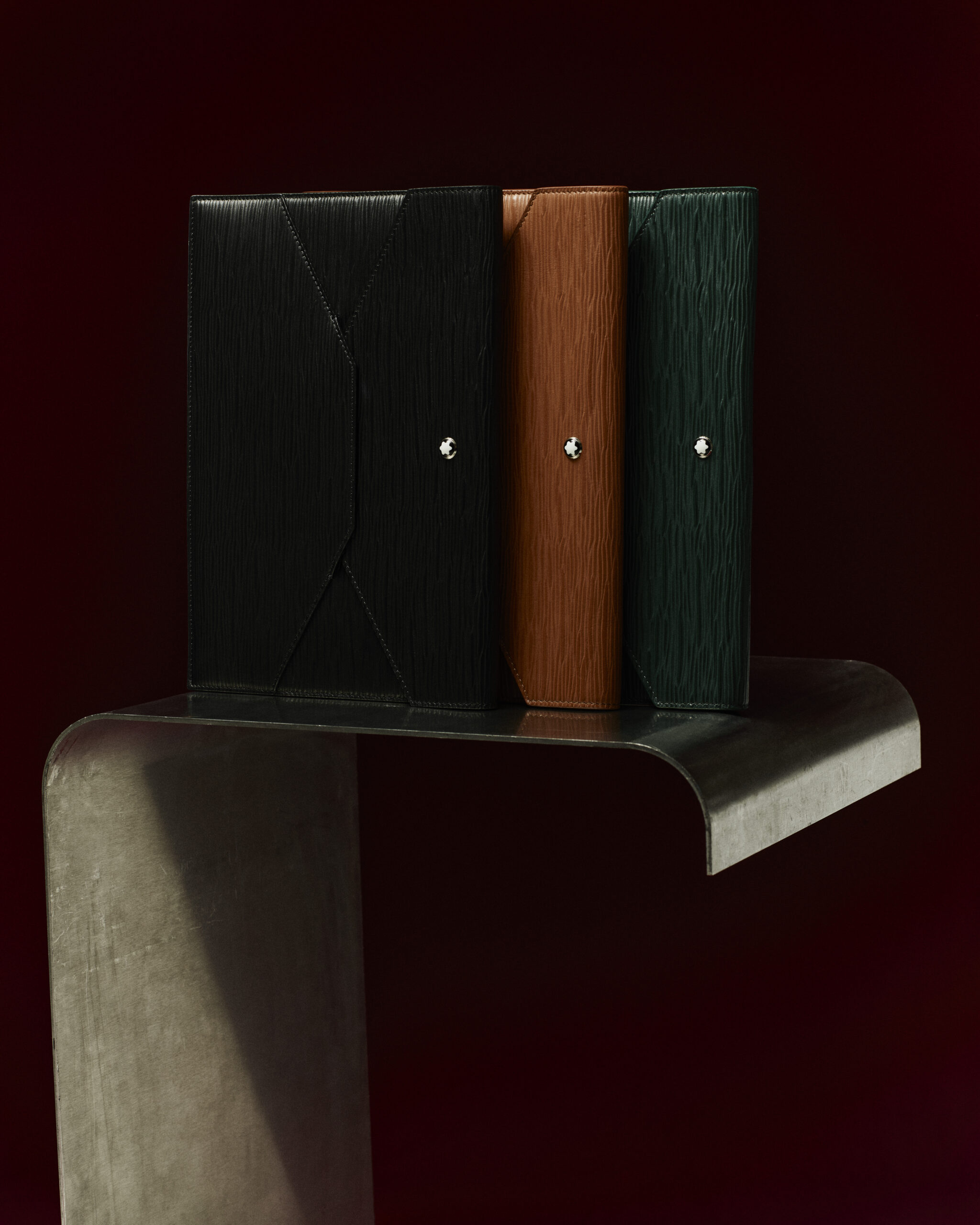 Montblanc has revisited its Meisterstück 4810 leather goods collection, adding practical finishes inspired by the world of writing and original stamped leather. The collection’s elegant new shapes are crafted in original stamped leather with a tree bark pattern, available in a palette of timeless natural colors. The collection offers clever storage solutions and a modular system that allows small items to be attached to large-format bags, for even greater personalization of each model. The triangular shape of the handles evokes the brand’s ink bottles, while the sides of the bags recall the folds of an envelope. Pieces include a slim briefcase, a trapeze-shaped tote and a bowling bag, with a practical modular system for attaching an envelope pouch, a mini bag or a phone pouch.