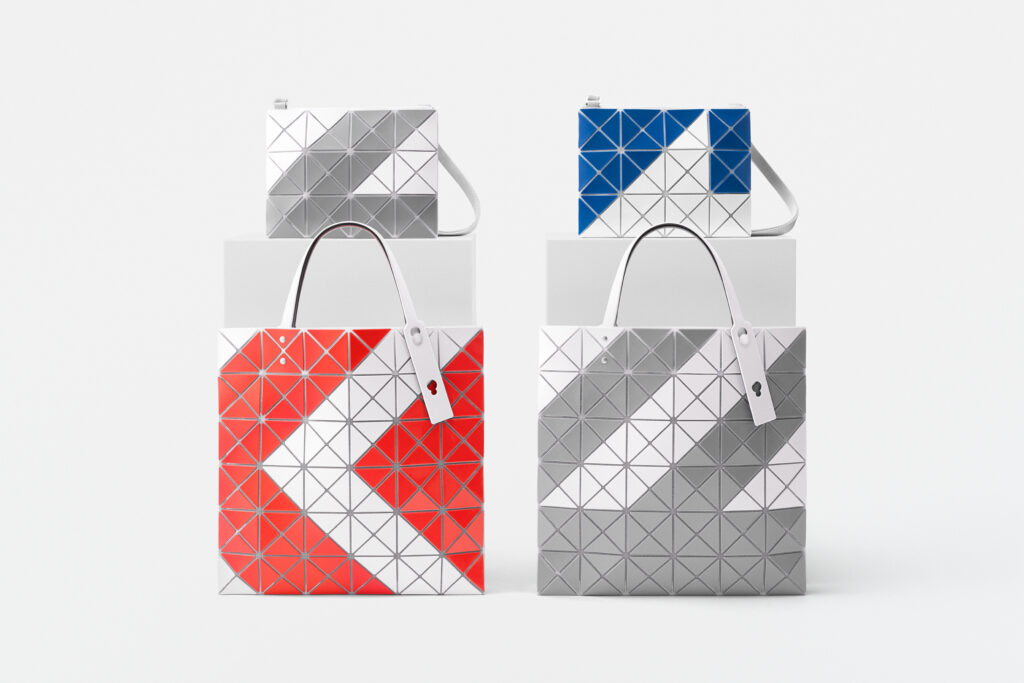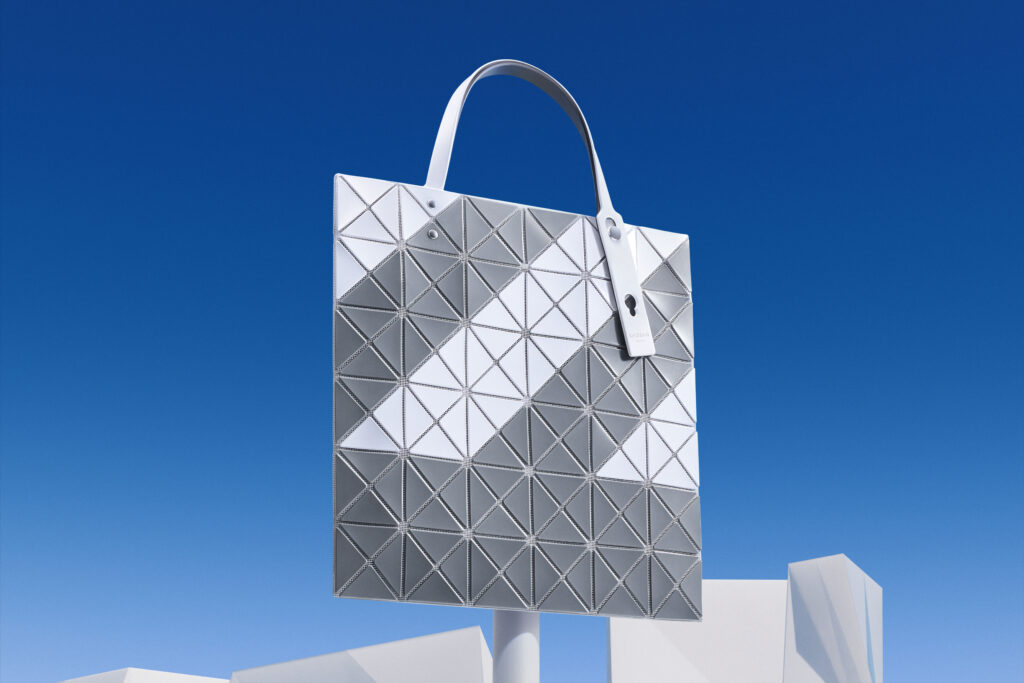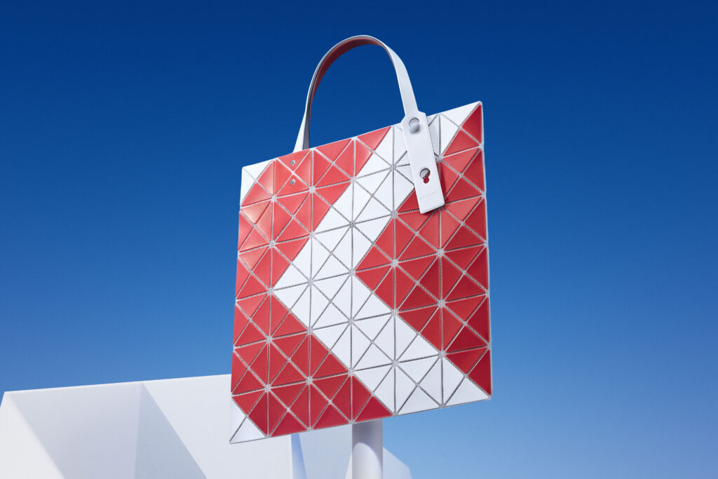 Since 2000, BAO BAO ISSEY MIYAKE has been building on the same principle – PVC triangles on polyester mesh, manufactured in Japan – a formal vocabulary that reinvents itself through color and pattern. The SIGN series, available from March 1, extends this vocabulary to urban signage. The object raises a question that goes beyond leather goods: at what distance does a surface become a sign?