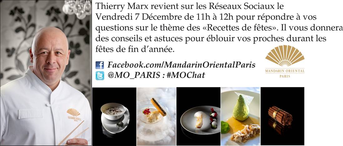 Art de vivre Mandarin Oriental, Paris propose un chat avec Thierry Marx – vendredi 7 décembre by pascal iakovou 30 novembre 2012 30 novembre 2012 0 FacebookTwitterPinterestLinkedinWhatsappEmail