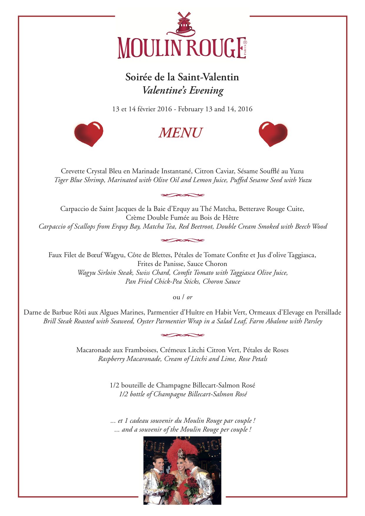 Art de vivreGastronomie Saint Valentin au Moulin Rouge, Love is in the air ! by pascal iakovou 7 février 2016 7 février 2016 0 FacebookTwitterPinterestLinkedinWhatsappEmail